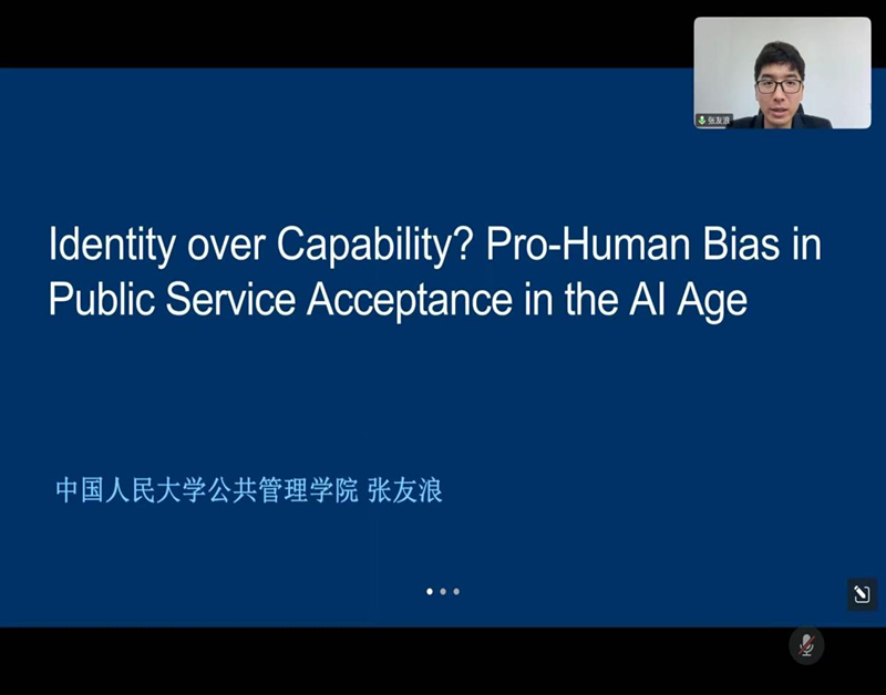 2025年9月24日下午,我院主办的中国公共管理西湖论坛系列讲座第四十九讲顺利举行,中国人民大学公共管理学院副院长张友浪教授应邀作题为“能力抑或身份认同?政府服务AI应用中的亲人类偏见与公众接受度研究”的学术讲座。讲座由院长汪锦军教授主持,学院部分师生在线参与。