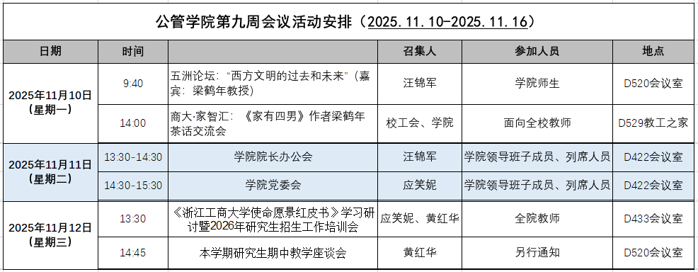 2025年11月10日(星期一);9:40;五洲论坛:“西方文明的过去和未来”(嘉宾:梁鹤年教授);D520会议室